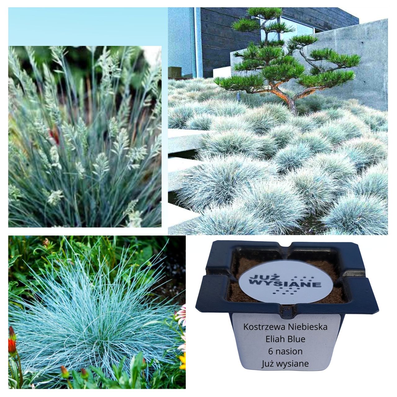 Wyjątkowa, intensywnie niebieska i niezwykle dekoracyjna – Kostrzewa niebieska ‘Eliah Blue’ tworzy zwarte kępy, które zachwycają kolorem i formą przez całe lato. Dorasta do 20–30 cm wysokości i prezentuje lekko rozłożysty pokrój. Jej niezwykła barwa liści najlepiej uwidacznia się w suchych, ubogich glebach, dzięki czemu staje się spektakularnym akcentem w każdym ogrodzie. Dzięki zestawowi „JUŻ WYSIANE” rozpoczniesz uprawę łatwo, szybko i bez tradycyjnego wysiewu! 🌱✨
