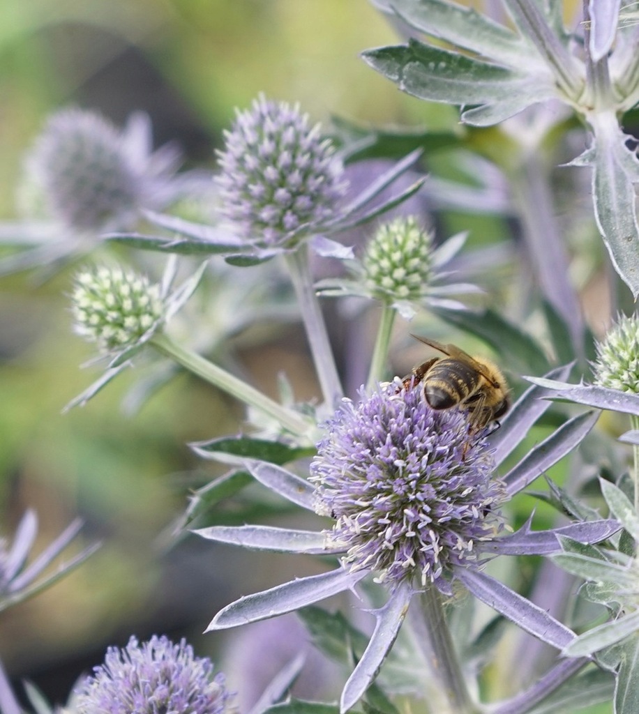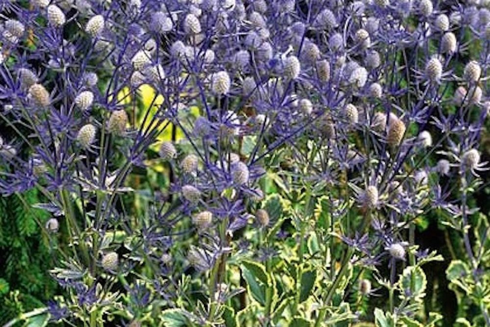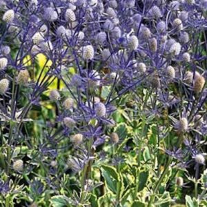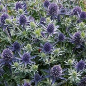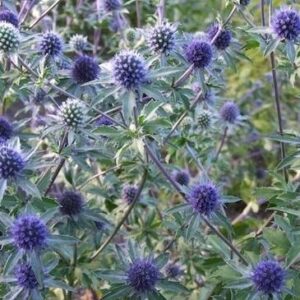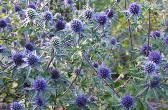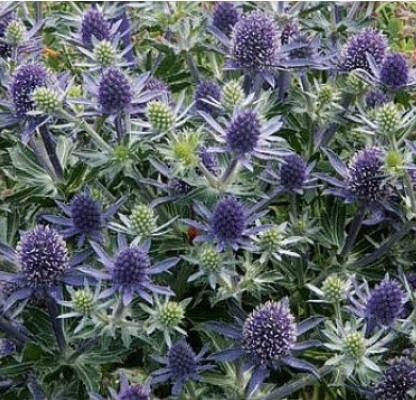 Mikołajek płaskolistny niebieski to ozdobna bylina o wyjątkowo ciekawych kwiatostanach zebranych w główki na szczytach pędów i niebieskim zabarwieniu. Osiąga 120 cm wysokości. Kwitnie od lipca do września. Kwiaty owadopylne, zapylane przez trzmiele, pszczoły i motyle. Kwitną od lipca do września.