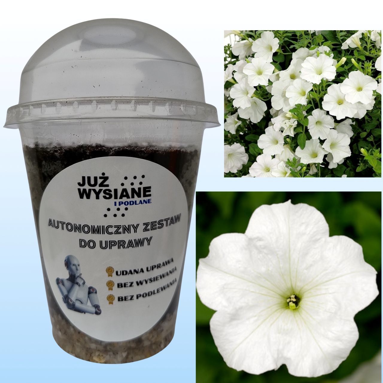 🌱 Autonomiczny Zestaw do Uprawy Petunii F1 Duvet White – już wysiana i podlana!