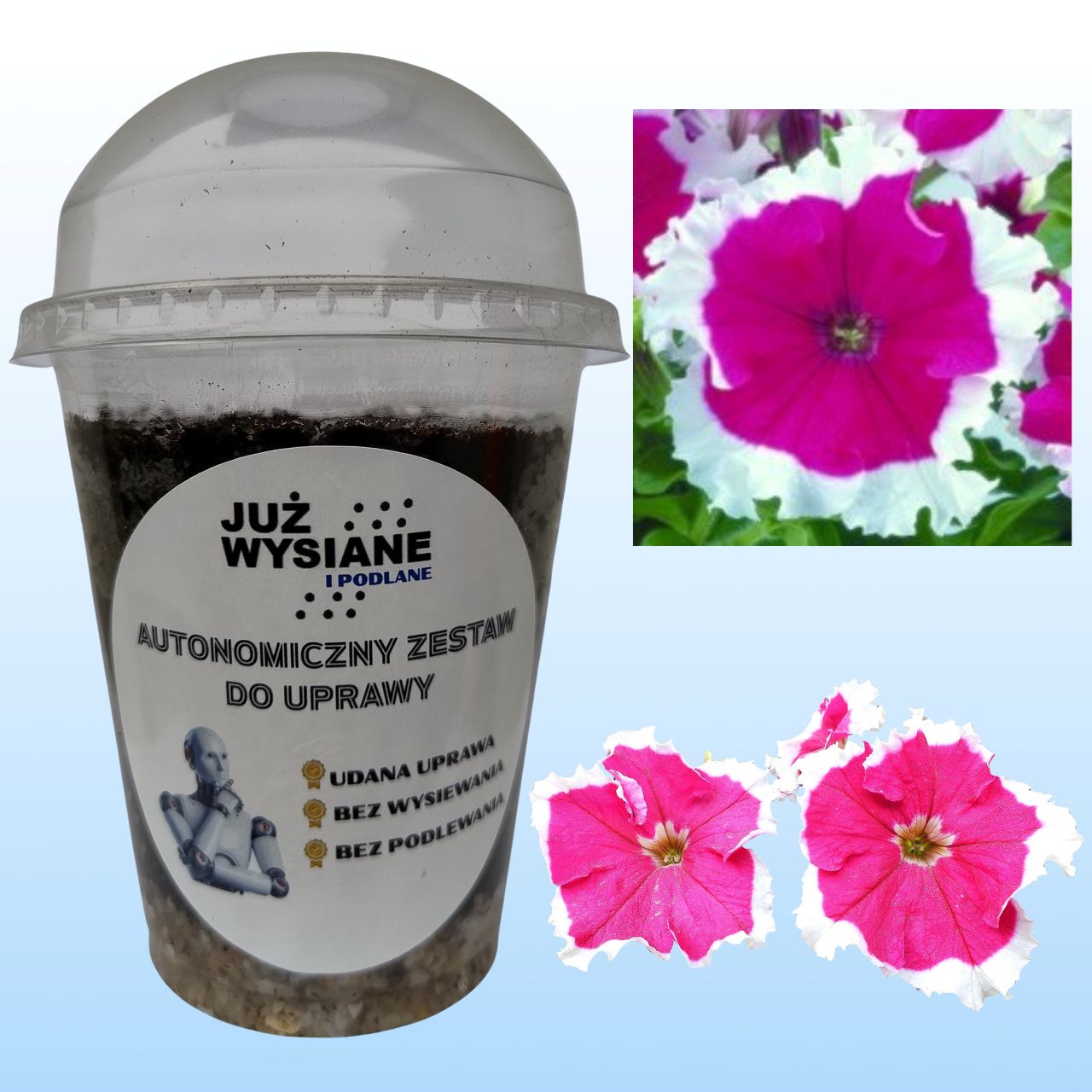 🌱 Autonomiczny Zestaw do Uprawy Petunii F1 Frost Cherry – już wysiana i podlana!