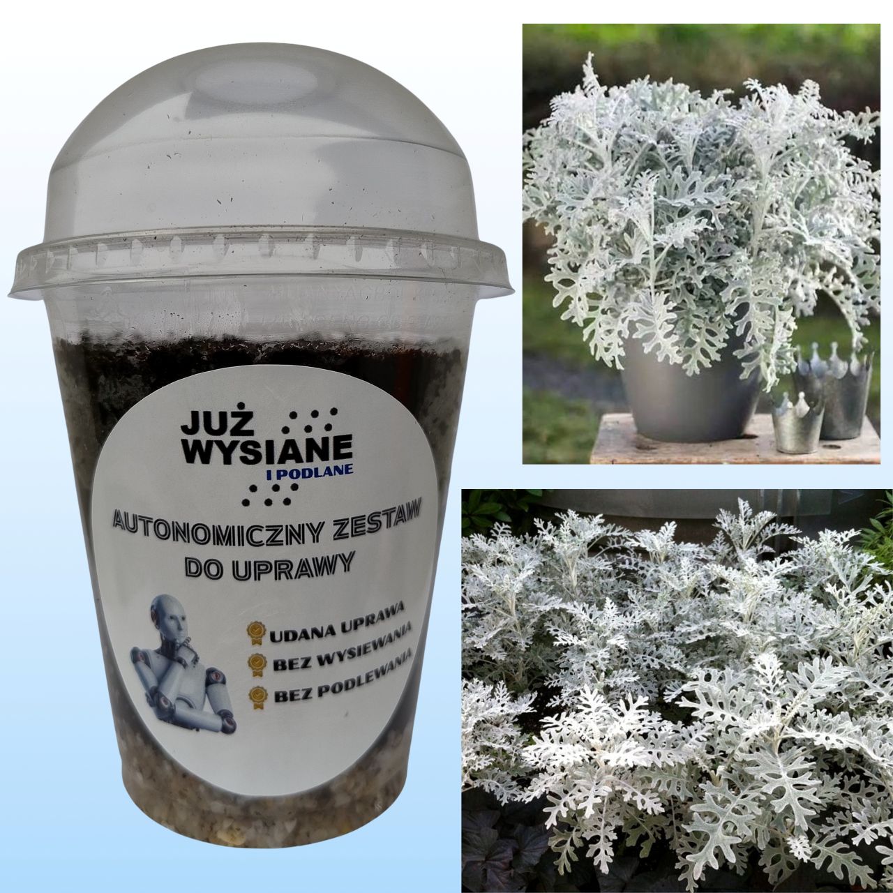 Poznaj nowoczesny, całkowicie bezobsługowy zestaw do uprawy Starca Popielnego Mrozy – odmiany o dekoracyjnych, srebrzystych liściach, które wprowadzają chłodny, elegancki akcent do Twojego domu, balkonu lub ogrodu. Nie musisz siać ani podlewać – zestaw jest gotowy do działania! Wystarczy postawić go w jasnym, ciepłym miejscu, a nasiona wykiełkują same.