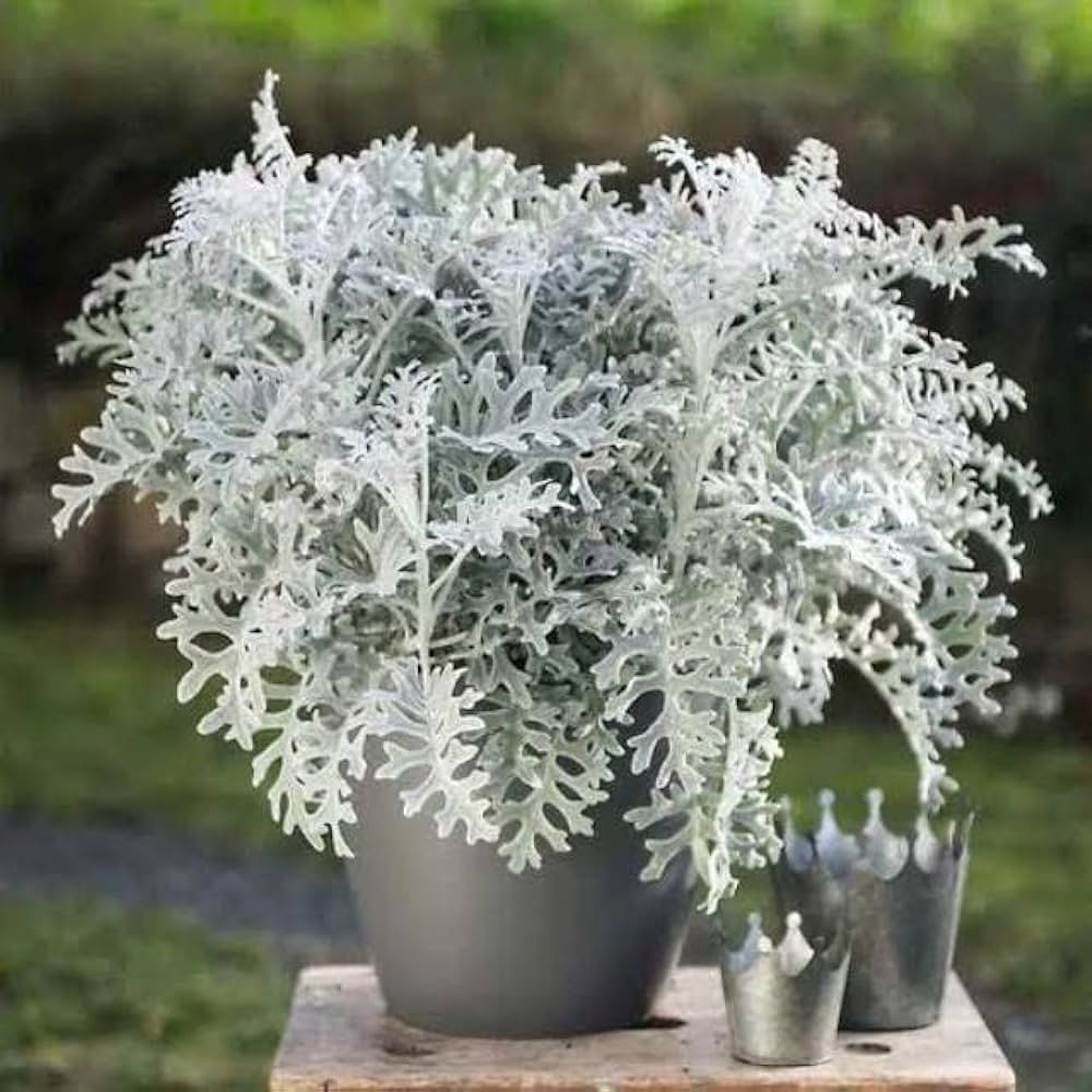 Odmiana Mrozy zachwyca srebrzystymi, delikatnie omszonymi liśćmi, które tworzą efektowne, dekoracyjne kępy. Roślina doskonale sprawdza się w donicach, skrzynkach balkonowych i pojemnikach dekoracyjnych, wprowadzając elegancję i chłodny, nowoczesny akcent.