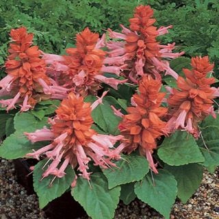 Kwiaty: intensywnie łososiowe, zebrane na szczytach pędów, otoczone barwnym kielichem 🌸