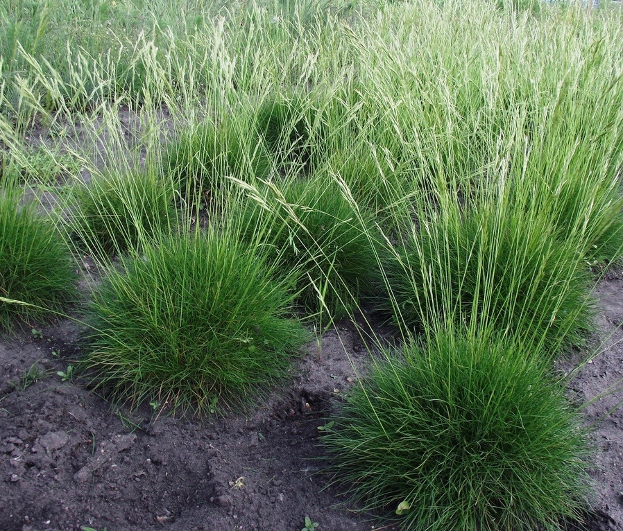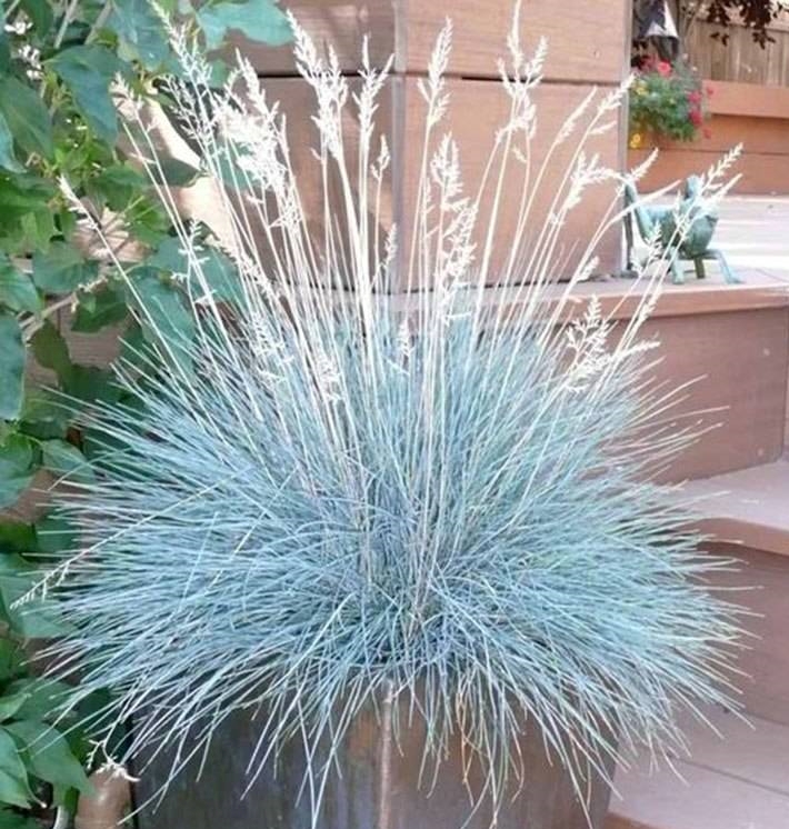 🌾 Kostrzewa niebieska – gęste, niebiesko-szare kępki nadające ogrodowi chłodną, elegancką tonację,