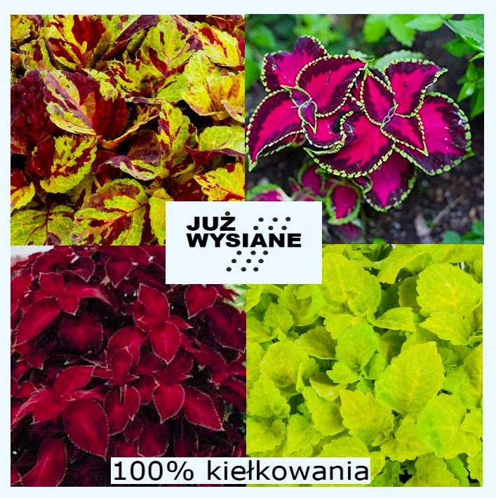 w każdym pojemniku po 6 już wysianych nasion jednej z czterech wyjątkowych odmian koleusa z serii Fairway: